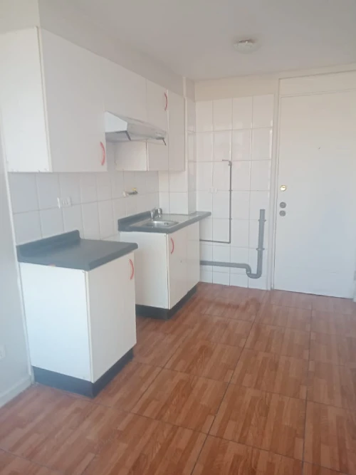 El departamento dispone de living-comedor con cocina integrada, equipada con muebles y campana, además de instalación para lavadora. Cuenta con dormitorio en suite con clóset, baño completo con vanitorio y tina, muy cómodo. Piso completamente en cerámica.